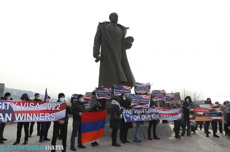 Այսօր Երևանում ԱՄՆ դեսպանատան շենքի մոտ՝ Ծովակալ Իսակովի արձանի մոտից մեկնարկեց DV-2022 Հայաստանյան Գրին Քարտի շահառուների բողոքի ակցիան: