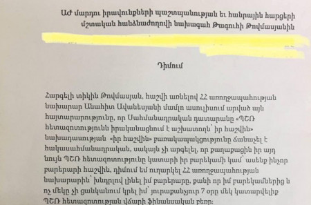 Քաղաքացին ինձ ուղղված դիմումում տեղեկացրել է, որ դիմում է ուղարկել նաև ՀՀ առողջապահության նախարարին՝ խնդրելով լինել իր բարերարը, քանի որ իր բարեկամներից և ոչ մեկը չի ցանկացել կրել իր ՊՇՌ հետազոտության վճարի ֆինանսական բեռը։
