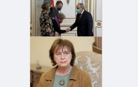 Առաջին նկարում խոնարհվածին օրերս անդրադարձել էի` ՀՀ ֊ում ԵՄ դեսպան Վիկտորին է, երկրորդ նկարում` ՀՀ֊ում ԵԽ գրասենյակի ղեկավար Մարտինա Շմիդտը։ Սրանք են Հայաստանում բռնությունների, ապօրինությունների, քաղաքական հետապնդումների քաջալերողն ու հովանավորը, սրանք են, որ լռել են Արցախում քիմիական զենքի գործածման դեմ, որ պապանձված են մեր ռազմագերիների հարցում, այս կույրերն են, որ այսօր և միշտ չեն տեսնում ցուցարարների դեմ կիրառված ոչ իրավաչափ ուժը, որ չեն տեսնում` ինչպես են հետապնդվում ոչ իշխանահաճո որոշումներ կայացնող դատավորները, դիցուք` Աշոտ Երկաթին օրերս ազատ արձակած Բորիս Բախշիյանի նկատմամբ արդեն այսօր նախաձեռնված հետապնդումը։