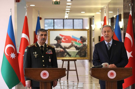 Թուրքիայի ու Ադրբեջանի պաշտպանության նախարարներ Հուլուսի Աքարի ու Զաքիր Հասանովի հանդիպումից հետո տեղի է ունեցել համատեղ կարճ ասուլիս: Դրա ընթացքում Աքարն անդրադարձել է հանդիպման ընթացքում քննարկված հարցերին: Այս մասին տեղեկացնում է ermenihaber.am-ը։