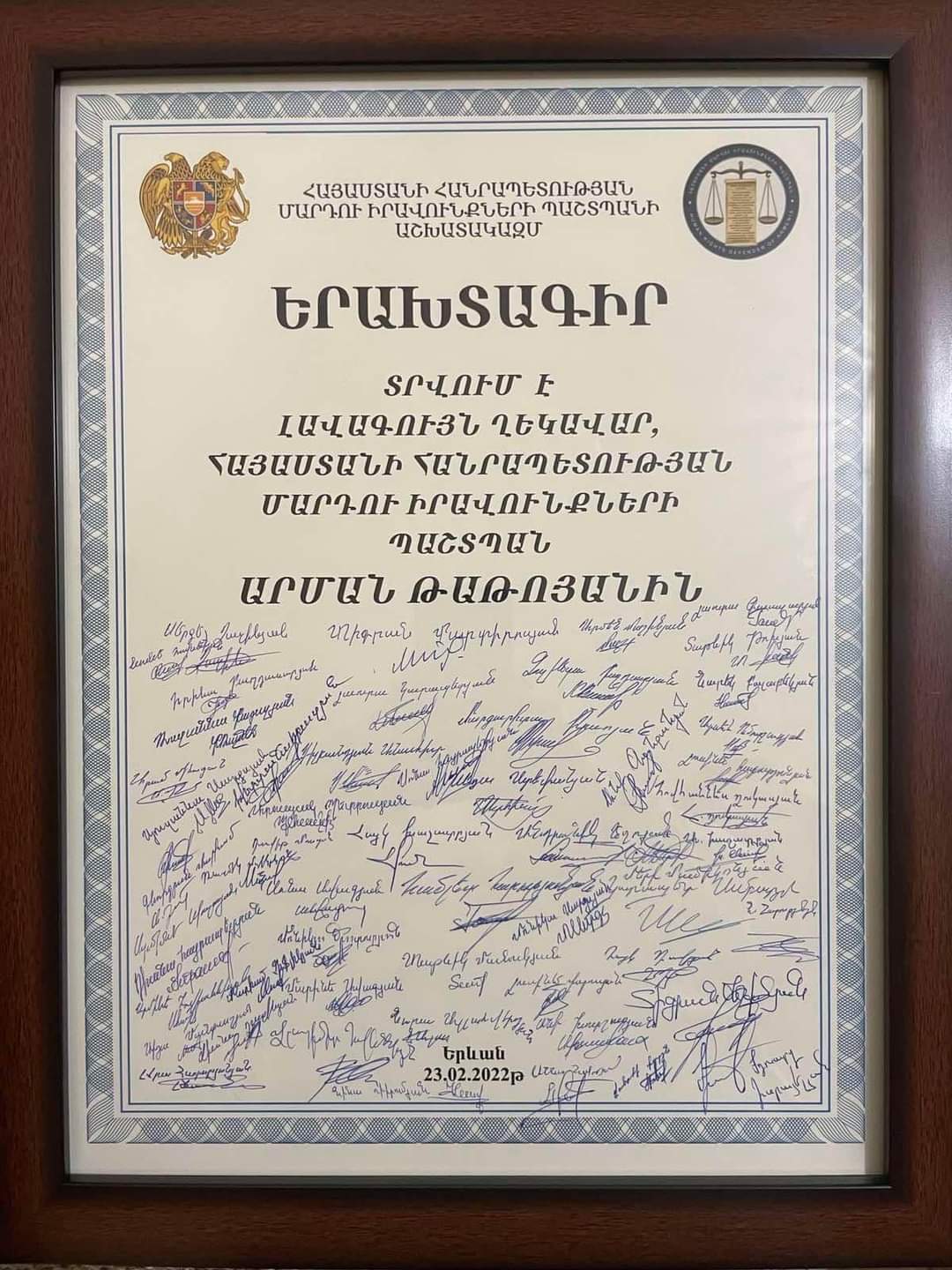 Մեծ ուրախությամբ ընդունեցի աշխատողների մակագրություններով ինձ համար պատրաստված երախտագիրն ու հուշամեդալը։