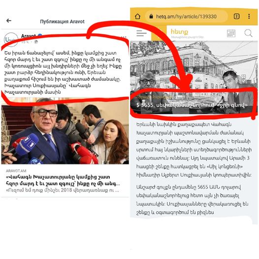 «Այո՛, Հայաստանի ապագա նախագահ Վահագն Խաչատուրյանը շատ արդար ու չկոռումպացված մարդ է... Բայց միայն, ենթադրաբար, Խաչատուր Սուքիասյանի և այլ քայլիստների համար... Այդ չկոռումպացված մարդը, թեկուզ 1994-ին մոտ հազար քառակուսի մետր տարածքը Երևանի սրտում, իրեն չկոռումպացված բնութագրող նույն Խաչատուր Սուքիասյանին վաճառել է 5655 դոլարով... Այսպիսի ծիծաղելի գնով այդ ժամանակ նույնիսկ Նուբարաշենում մեկ սենյականոց գնել հնարավոր չէր... Այո՛, Հայաստանի ապագա նախագահ Վահագն Խաչատուրյանը շատ բարձր հեղինակություն ունի... Ենթադրաբար, այդ նույն Սուքիասյան Խաչատուրի մոտ՝ այսպիսի ծիծաղելի գնով իրեն Երևանի կենտրոնում ահռելի շենք «նվիրելու» համար...»: