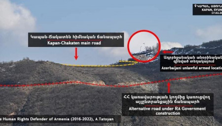 «Պարզվում է` Կառավարության կողմից Սյունիքում կառուցվող նոր հիմնական ճանապարհը, որը փոխարինելու է և դառնալու է Կապան-Ճակատեն հիմնական ճանապարհին այլընտրանք, կրկին տարբեր հատվածներում գտնվում է ադրբեջանական զինված ծառայողների անմիջական դիտարկման ներքո։ Ապահովված չէ անվտանգության անգամ նվազագույն մակարդակ: