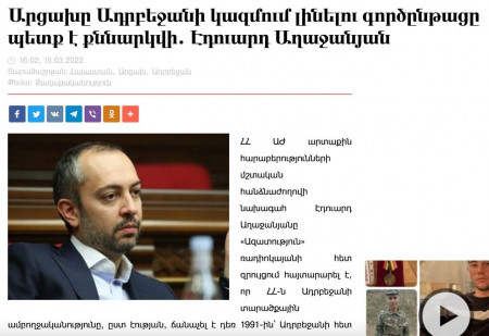 Կոլաբորացիոնիստ դե ֆակտո իշխանության հերթական ներկայացուցիչը, որը նաև ԱԺ արտաքին հարաբերությունների հանձնաժողովի նախագահն է, հերթական անգամ խեղաթյուրում է ազգային մեր ողջ պայքարի էությունը ու փաստացի ասում, որ Արցախը կարող է լինել Ադրբեջանի կազմում։