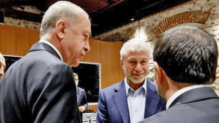 Ստամբուլում ռուս–ուկրաինական պատվիրակությունների հանդիպումից առաջ Թուրքիայի նախագահ Ռեջեփ Թայիփ Էրդողանը կարճ հանդիպում է ունեցել ռուս միլիարդատեր Ռոման Աբրամովիչի հետ։ Ստամբուլի Դոլմաբահչե պալատում կայացած հանդիպմանը ներկա են եղել Թուրքիայի Թուրքիայի արտգործնախարար Մևլութ Չավուշօղլուն և Էրդողանի մամուլի խոսնակ Իբրահիմ Քալընը: