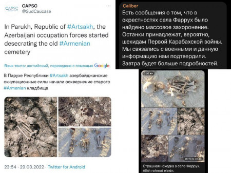 Բացի այդ տելեգրամյան Cilicia Project ալիքը հաղորդում է, որ ադրբեջանական ԶԼՄ-ը փորված հայկական գերեզմանները ներկայացրել են որպես շեհիդների եղբայրական գերեզման: