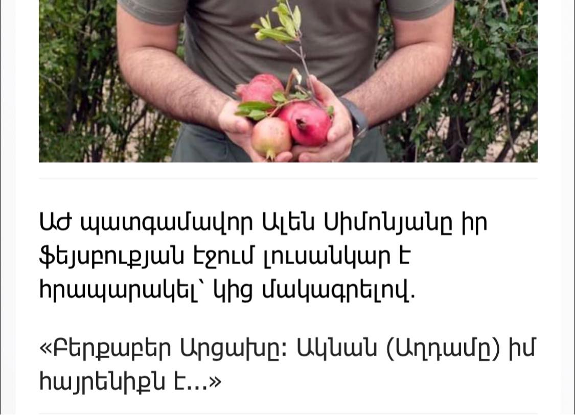 Արցախը համարո՞ւմ եք Ադրբեջանի ամբողջականության մաս, պե՞տք է գտնվի Ադրբեջանի կազմում. այո կամ ոչ»,- ֆեյսբուքյան օգտատիրոջ այս հարցին՝ ալենը պատասխանում է. «Ես իրավունք չունեմ այդ հարցին բարձրաձայն պատասխանել: Մենք բանակցությունների մեջ ենք ու բանակցությունների մեջ ենք մտնում: Պառլամենտական երկրի ԱԺ նախագահի կողմից կոնկրետ դիրքորոշում դնելը կարող է ազդեցություն ունենալ բանակցությունների բուն բովանդակության վրա»: