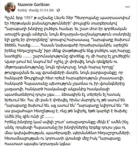 Իսկ Ղարիբյանի ցեղասպանության այս քարոզը հավանում է գրողներին գրաքննող գրող Կարեն Անտաշյանը, որը երեկ հեքիաթներ էր պատմում, թե ռուս-թուրքական պայմանավորվածությամբ են Արցախը հանձնել, իսկ հիմա հավանում է հայերի թրքացնելու քարոզը։ Մսրա ծռերի, դասալիք բաբաջանյանների բացակայությունն են լրացնում, այն բանից հետո, երբ ԱՄՆ դեսպանը հանդիպեց հայերի ոչնչացման առաջամարտիկ Ալիևի հետ։
