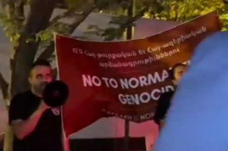 Նրանք իրենց մոտ ունեին պաստառներ՝ «Ոչ հայ թուրքական և հայ-ազերական արձանագրություններին» գրությամբ։