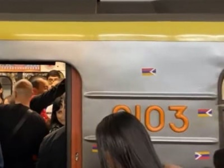 Ակցիա մետրոյում. Գնացքներին ու պատերին փակցրեցին Արցախի դրոշներ. Տեսանյութ