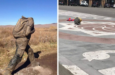 Կապիտուլյանտ Նիկոլի արձանի գլուխը Վանաձորի Հայքի հրապարակում է: