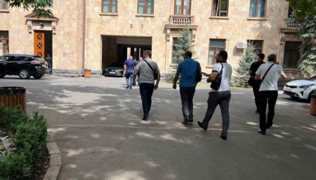 Միանման պայուսակներով, քաղաքացիական հագուստով անձինք քայլում են դեպի ԱԺ շենք
