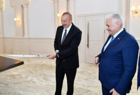 «Էդողանական վարչախմբից եկող «դրական» ազդակներն ավելացան ևս մեկով․ օրերս Թուրքիայի նախկին վարչապետ Բինալի Յըլդըրըմը Բաքվի բարբարոսական վարչախմբի պարագլխին նվիրեց Կոնստանդնուպոլիսը նվաճած օսմանյան սուլթան Մեհմեդ Բ-ի սրի կրկնօրինակը։