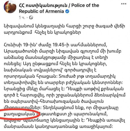 Ոստիկանության այս խայտառակ հաղորդագրությունը բավարար է քննության ընթացքը կասկածի տակ դնելու համար
