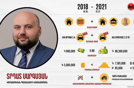 Համամադրելով Տրդատ Սարգսյանի ներկայացրած հայտարարագրերի տվյալները, արձանագրենք վերջին 4 տարիների ընթացում նրա ձեռքբերումները։