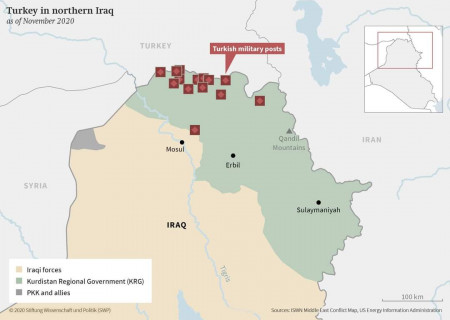 հ.գ. Կից քարտեզում Թուրքիայի ներկայությունն է Հյուսիսային Իրաքում։