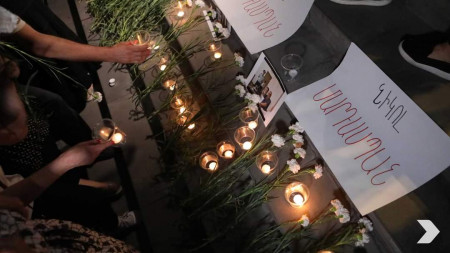 Երթի մասնակիցները ծաղիկներ խոնարհեցին դատարանի շենքի առաջ, որտեղ մահացել է կինոպրոդյուսեր Արմեն Գրիգորյանը. Տեսանյութ
