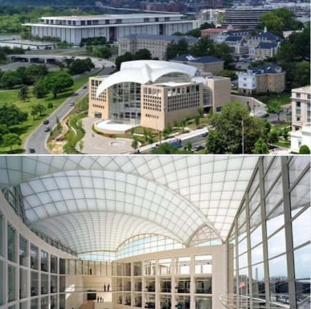 Նկարում խաղաղության անպետք ինստիտուտի շքեղ շենքը դրսից ու ներսից։