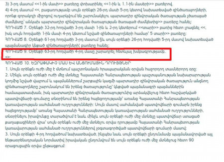 ՀՈԴՎԱԾ 9. Օրենքի 63-րդ հոդվածի 4-րդ մասը շարադրել հետևյալ խմբագրությամբ.