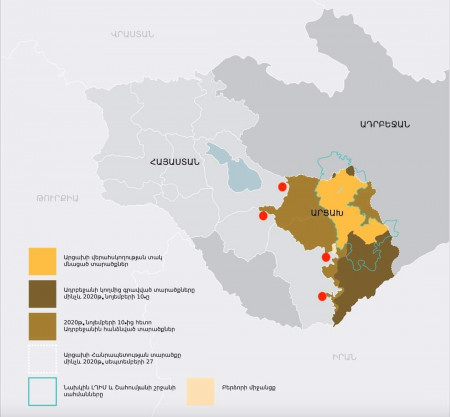 Քարտեզի վրա կարմիր կետերով նշված են այն ուղղությունները, որով Ադրբեջանը վերջին ժամերին իրականացնում է ինտենսիվ հարվածները։ Սա ՀՀ սուվերեն տարածքն է։ Բայց ոչ մի միջազգային պայմանագիր ու սահման չի կանգնեցնելու թշնամիներին։