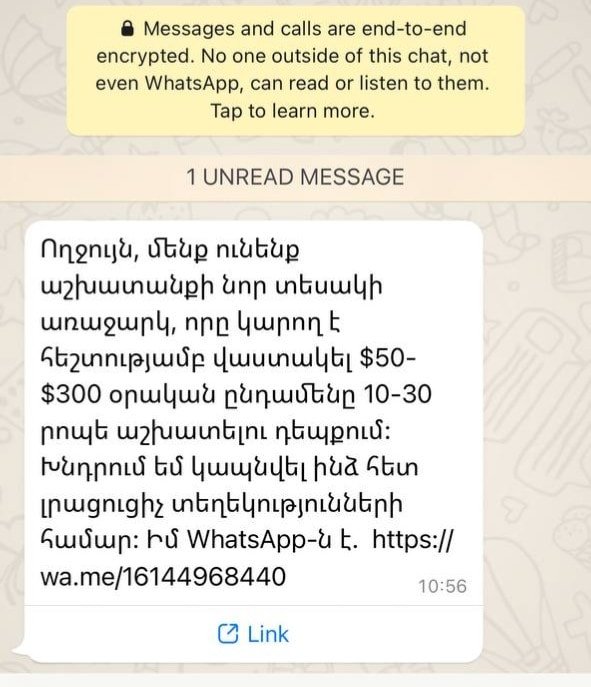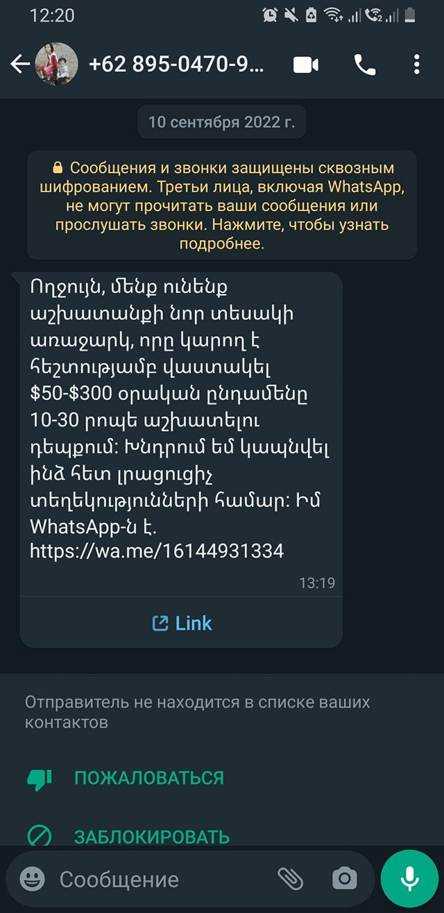 Շատերը էսօր սենց բան են ստացել։ Սա հարեւանները չեն, պետք չէ վախենալ, թե ձեզ թիրախավորել են հատուկ ծառայությունները։ Բայց մեկ է վտանգավոր է, գումար են գողանում։ Տաս արեք, ռեփորթ արեք ու արգելափակեք:
