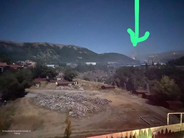 Նա նաեւ ասել է, որ գերմանուհի զբոսաշրջիկն իր հյուրանոցի սենյակից կարողացել է լուսանկարել պայթյունները, այնքան մոտիկ են նրանք եղել դրանց։ «Ես չափազանց մտահոգ եմ։ Մենք ապրումակցում ենք հայ ժողովրդին»,- ասել է Էրիկ Թինտրուպը։