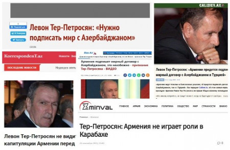 «ՀՀ նախկին նախագահը կապիտուլյացիայի մեջ վատ բան չի տեսնում». Տեր-Պետրոսյանը «սեփականաշնորհել» է ադրբեջանական լրատվամիջոցների առաջին էջերը