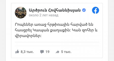 Հոկտեմբերի 10-ին ժամը 12:00-ին հաստատվում է հրադադար, դրանից երկու րոպե հետո Արծրունն անում է այս գրառումը: Կապանին եղած «հարվածից» հետո մերոնք պատասխանում են: Հետո պիտի պարզվեր, որ ադրբեջանական կողմը հրադադարից երկու ժամ առաջ է հարվածել Կապանի մոտ դիրքերից մեկին: Արծրունն էլ ասում է, թե սխալ ել է ու կապանին հարված չի եղել, զոհեր չկան: Ստացվում է, որ Արծրունը կեղծ լուրով առիթ է ստեղծել, որ հայկական կողմը խախտի հրադադարը: Հիմա հոկտեմբերի 10-ից հետո զոհված տղաների ծնողները կարող են գնալ ու Արծրունին հարցեր տալ: