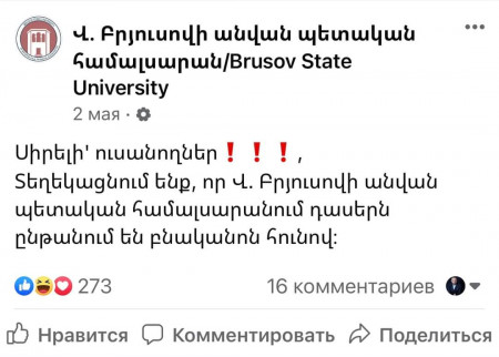 Բրյուսովի անվան պետական համալսարանը միանալու է Մանկավարժական համալսարանին. հայտնի է ժամկետը