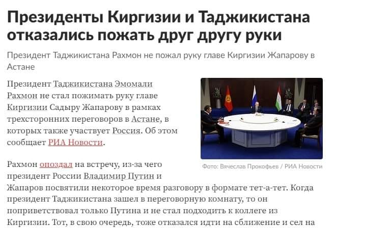 Ղրղզստանի ու Տաջիսկստանի սահմանին շաբաթներ առաջ բախում էր տեղի ունեցել, որ ընթացքում երկու կողմն էլ մի քանի տասնյակ զոհ էին տվել: Իրենց ժողովրդի զավակների կյանքերը գնահատող նախագահները հանդիպելիս իրար չեն բարեւել: