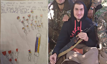 Այս տողերը գրել է 44-օրյա պատերազմի հերոս Հայկազը 3-րդ դասարանում. Հայկը այս պատերազմի նահատակ հերոսներից է, որ գիտակցել է ինչ է անում և ուր է գնում
