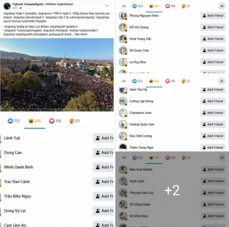 Պարզվեց, որ գրառումը ծիծաղելի է թվացել Դոնգ Վայ Լային, Հույ Վու Տունին, Թանհ Հույեն Տռանին և էլի մի քանի հարյուր վիետնամացի «օգտատիրոջի»։ (Եթե չգիտեք, ապա կայքեր կան, որտեղ կարելի է պատվիրել վիետնամացի, պակիստանցի, նիգերիացի և մի շարք այլ երկրների օգտատերերի մի քանի հարյուր կամ հազար լայք պատվիրել)...