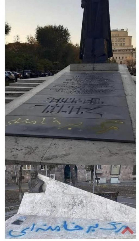 Ոստիկանության Կենտրոնական բաժնի ծառայողները պարզել են, որ Խաչքարերի պուրակի Գարեգին Նժդեհի արձանի և Սայաթ-Նովայի պողոտայում գտնվող արգենտինացի գեներալ Մանուել Բելգրանոյի արձանի տապանաքարերին պարսկերեն բառեր են գրված: