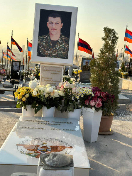 Մխիթար Գալեյանի շիրմաքարին Եռաբլուրում Արցախի Հանրապետության զինանշանն է. Լուսանկար