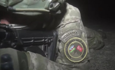 Ադրբեջանում մեկնարկած թուրք-ադրբեջանական «Եղբայրական բռունցք» համատեղ զորավարժության կադրերից է..