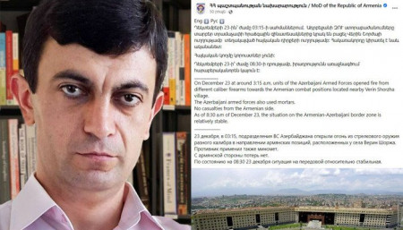 «Հիշո՞ւմ եք` նախկինում էսպիսի հաղորդագրություններում մի նախադասություն կար` «հայկական զինված ուժերը կամ հայկական կողմը պատասխան հարվածով (կամ պատժիչ գործողությամբ) լռեցրել է թշնամուն կամ ճնշել նրա ակտիվությունը»։ Էս մի նախադասությունը մարդկանց համար և՛ անվտանգության երաշխիք էր, և՛ արժանապատվություն, և՛ հպարտություն, և՛ երկրի մարտունակ Զինված ուժերի, իրեն երկիրը պաշտպանող բանակի գոյության ապացույց, և՛... ամեն ինչ էր։