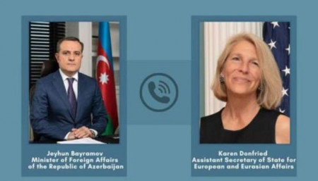 Արտաքին գործերի նախարար Ջեյհուն Բայրամովն այսօր հեռախոսազրույց է ունեցել ԱՄՆ պետքարտուղարի Եվրոպայի և Եվրասիայի հարցերով օգնական Քերըն Դոնֆրիդի հետ. հայտնում է Ադրբեջանի ԱԳՆ մամուլի ծառայությունը։ Բայրամովն ու Դոնֆրիդը քննարկել են երկու երկրների համագործակցության օրակարգը և տարածաշրջանում տիրող իրավիճակը։