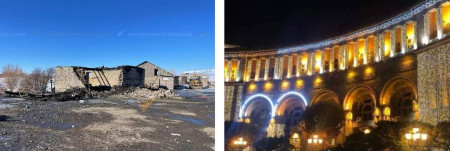 Աջից՝ «Երևանի տոնական լուսավորությունը», որի վրա Նիկոլը ծախսել ա $2'000'000 (երկու միլիոն ԱՄՆ դոլար):