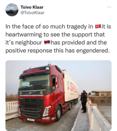 Թուրքիայի երկրաշարժի հարցում հուզիչ է տեսնել հարևան Հայաստանի աջակցությունը. Տոյվո Կլաար