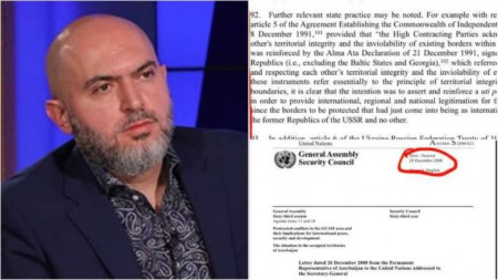 Այսպես՝ ձեզ ներկայացված փաստաթղթում, որը թվագրված է 2008թ. դեկտեմբերի 29, ՄԱԿ-ում Ադրբեջանի մշտական ներկայացուցիչ Աղշին Մեհդիեւը, ՄԱԿ-ի գլխավոր ասամբլեայի օրակարգի շրջանակներում՝ Գուամ տարածքում, սառեցված հակամարտությունների վերաբերյալ քննարկման կապակցությամբ ներկայացնում է նամակ, որով խնդրում է ադրբեջանական հիմնավորումները «Ադրբեջանի տարածքային ամբողջականության մասին» դիտարկել և շրջանառել որպես ՄԱԿ գլխավոր ասամբլեայի փաստաթուղթ: