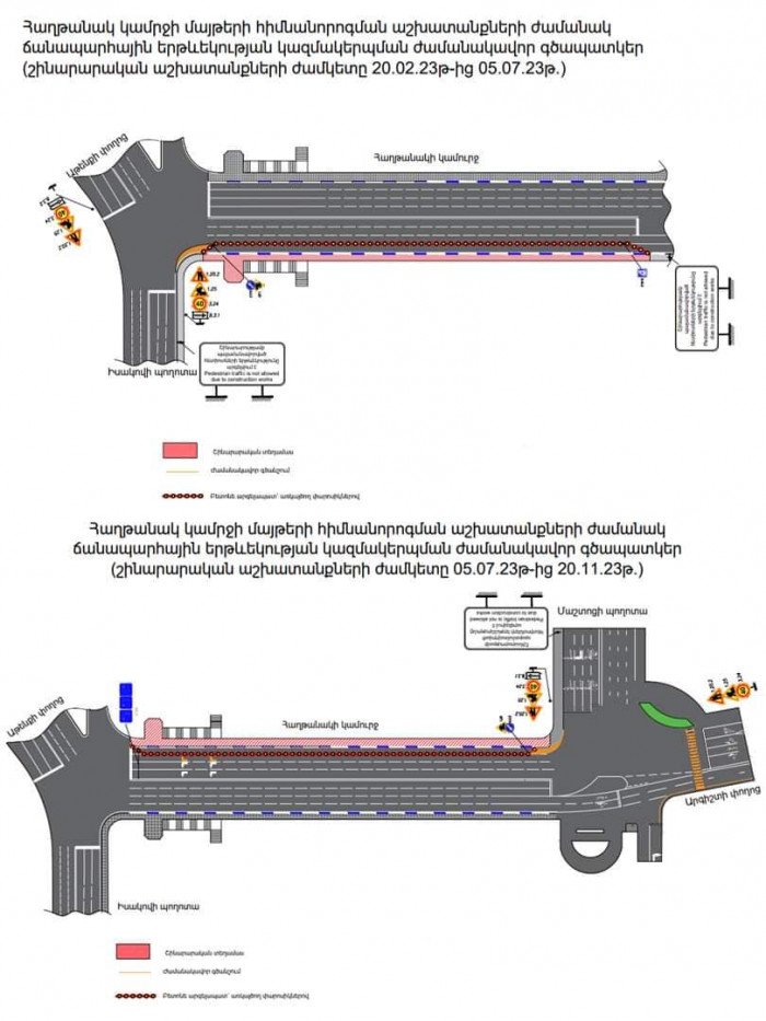 Ըստ այդմ՝ 20.02.2023թ-05.07.2023թ. կփակվի Իսակովի պողոտայից դեպի Արգիշտի փողոց ուղղության աջակողմյան հատվածը, իսկ 05.07.2023թ-20.11.2023թ.՝ Իսակովի պողոտայից դեպի Արգիշտի փողոց ուղղության ձախակողմյան հատվածը: Հետիոտների անվտանգ տեղաշարժը ապահովելու համար առաջարկվում է օգտվել Իսակովի պողոտայի սկզբնամասում գոյություն ունեցող ստորգետյա անցումից, ինչպես նաև Իսակովի պողոտայի և Արգիշտի փողոցի հատման խաչմերուկում գոյություն ունեցող հետիոտնային անցումից, ինչպես նաև Գր. Լուսավորիչ փողոցի ստորգետնյա հետիոտնային անցումից»: