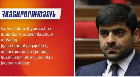 «Հայաստան» խմբակցությունը, մարտի 31-ին, ԱԺ-ում տեղի ունեցած միջադեպի առնչությամբ հայտարարություն է տարածել