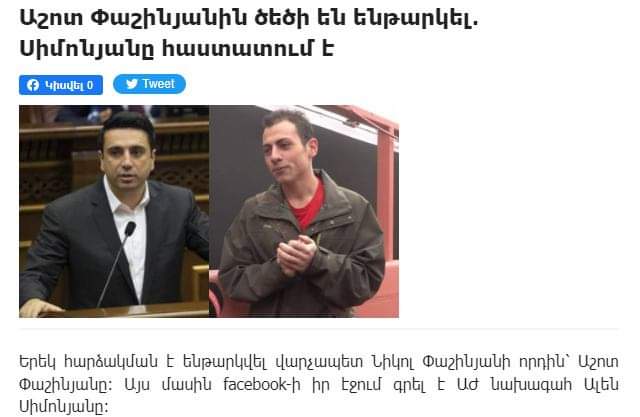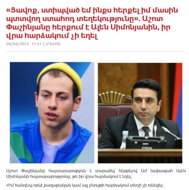 Աշոտ Փաշինյանը հերքում է Ալեն Սիմոնյանին