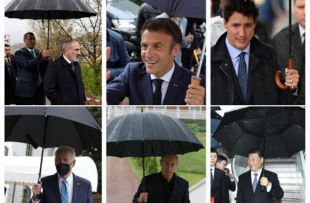 Համոզված եմ՝ լուսանկարում պատկերված և չպատկերված բոլոր երկրների ղեկավարներն էլ անձրևանոց բռնողներ ունեն... Սակայն շատերը գերադասում են իրենց անձրևանոցները, եթե պրոտոկոլը չի պարտադրում, իրենք բռնեն...