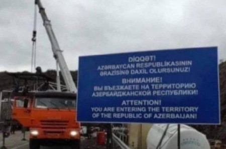 Ադրբեջանը Լաչինի միջանցքի անցակետում տեղադրել է տեղեկատվական վահանակ, որում ասվում է՝ «Ուշադրություն, դուք մուտք եք գործում Ադրբեջանի Հանրապետության տարածք»: