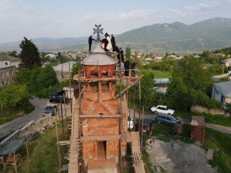 Արցախյան պատերազմի բոլոր հերոսների հիշատակը հավերժացվող եկեղեցի Աչաջուրի սրտում, օծվեց խաչը և զանգը