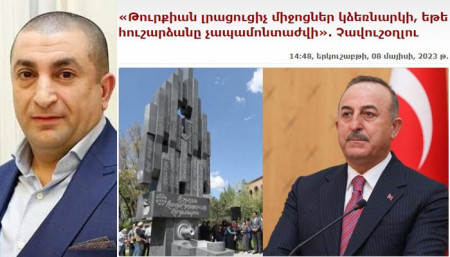 Հիշեք, եթե Նիկոլ Անհողը շարունակի ղեկավարել Հայաստանը, շատ շուտով թուրքերը պարտադրելու են փոխել փողոցների, դպրոցների անունները, որոնք կապ ունեն հայ վրիժառուների հետ, կապամոնտաժեն Ծիծեռնակաբերդի հուշահամալիրը ու տեղը կբացեն քաբաբնոց, ինչպես նաև կպարտադրեն հայերից ներողություն խնդրել թուրերից՝ 1914-18 թվականների համար... Հետաքրքիր է, գործակալ Արաբատ Միրզոևը կհամարձակվի՞ պատասխանել Չավուշօղլուի այս ցինիկ ու լկտի հայտարարությանը...»: