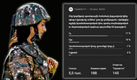 «Փաստինֆո»-ն հարցում էր կազմակերպել Յութուբ-ի իր ալիքում` պարզելու, թե ինչ են մտածում մեր քաղաքացիները` պատերազմի ժամանակ վարչապետի կինը պե՞տք է իրավունք ունենա՝ ըստ իր ցանկության, «սիմվոլիկ» այցելել հրամանատարական կետ, որտեղ ռազմավարական ու մարտավարական կարեւոր որոշումներ են կայացվում։