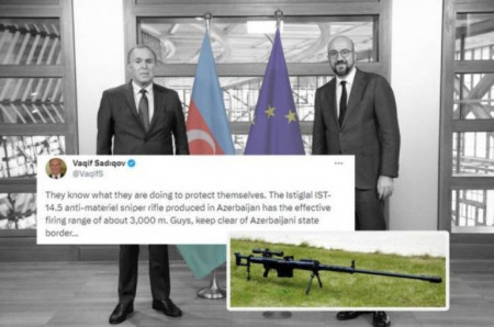 Հիշեցնենք, որ Եվրոպական խորհրդարանի պատվիրակության՝ Հայաստան կատարած այցի վերաբերյալ Սադիգովը գրառում էր արել «Թվիթեր»-ում՝ սպառնալիքներ հնչեցնելով ԵԽ պատգամավորների հասցեին։ Նա տեղադրել էր ադրբեջանական արտադրության դիպուկահար հրացանի պատկեր և նկարագրություն՝ հետևյալ մակագրությամբ.«Նրանք գիտեն, թե ինչ են անում պաշտպանվելու համար։ Ադրբեջանում արտադրված «Իստիգլալ ԻՍՏ-14.5» դիպուկահար հրացանն ունի մոտ 3000 մետր կրակի արդյունավետ հեռահարություն։ Հեռո՛ւ մնացեք Ադրբեջանի պետական սահմանից…»։
