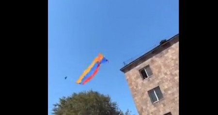Երևանի երկնքում սավառնում է Արցախի Հանրապետության դրոշը․ Տեսանյութ
